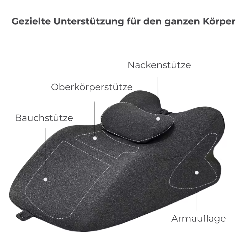 Die spezielle Form mit integrierter Mulde sorgt dafür, dass dein Körper stabil liegt, ohne ständig nachjustieren zu müssen.