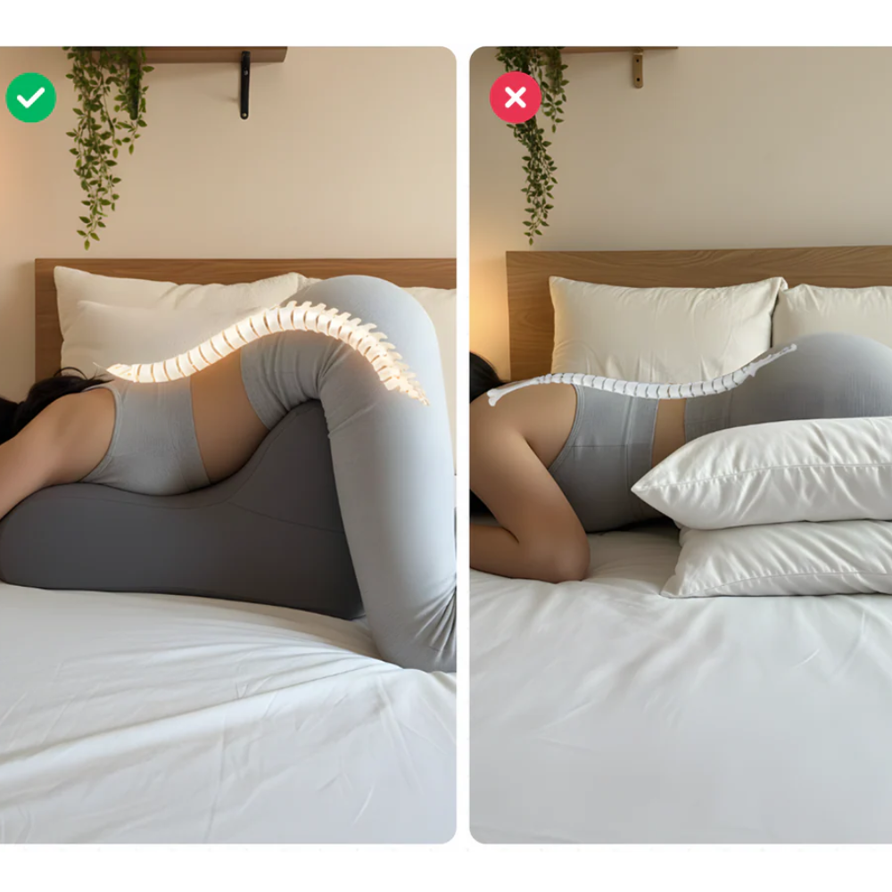 Ein gewöhnliches Kissen bietet kaum Unterstützung und bringt den Körper oft in eine unnatürliche Position.